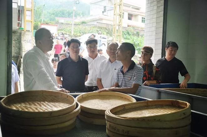 圖:潘軍帶領(lǐng)團(tuán)隊(duì)實(shí)地考察高坪鎮(zhèn)當(dāng)?shù)禺a(chǎn)業(yè)發(fā)展?fàn)顩r